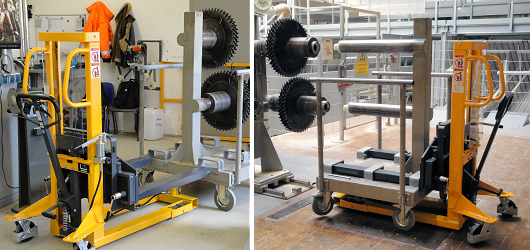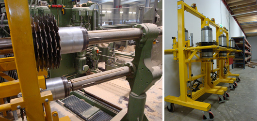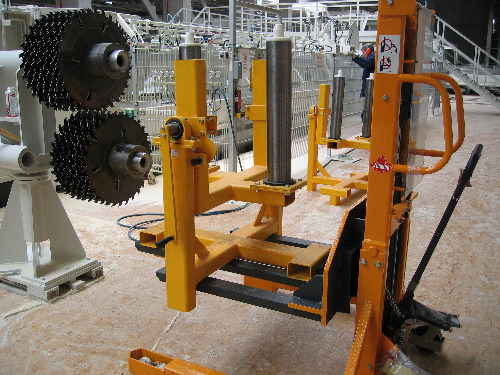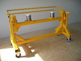Sägebüchsen auf dem Transportwagen. Zu diesem Zweck sind die