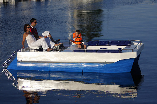 Ruderanlage für ein luxuriöses Freizeit-Ponton-Tretboot. Das