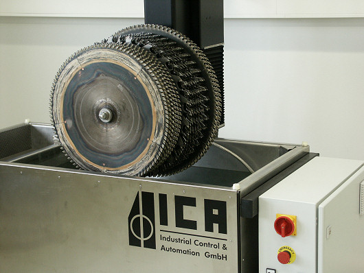 die Flüssigkeit eingetaucht sind. Anhaftender Schmutz wird dadurch regelrecht abgerissen, ohne